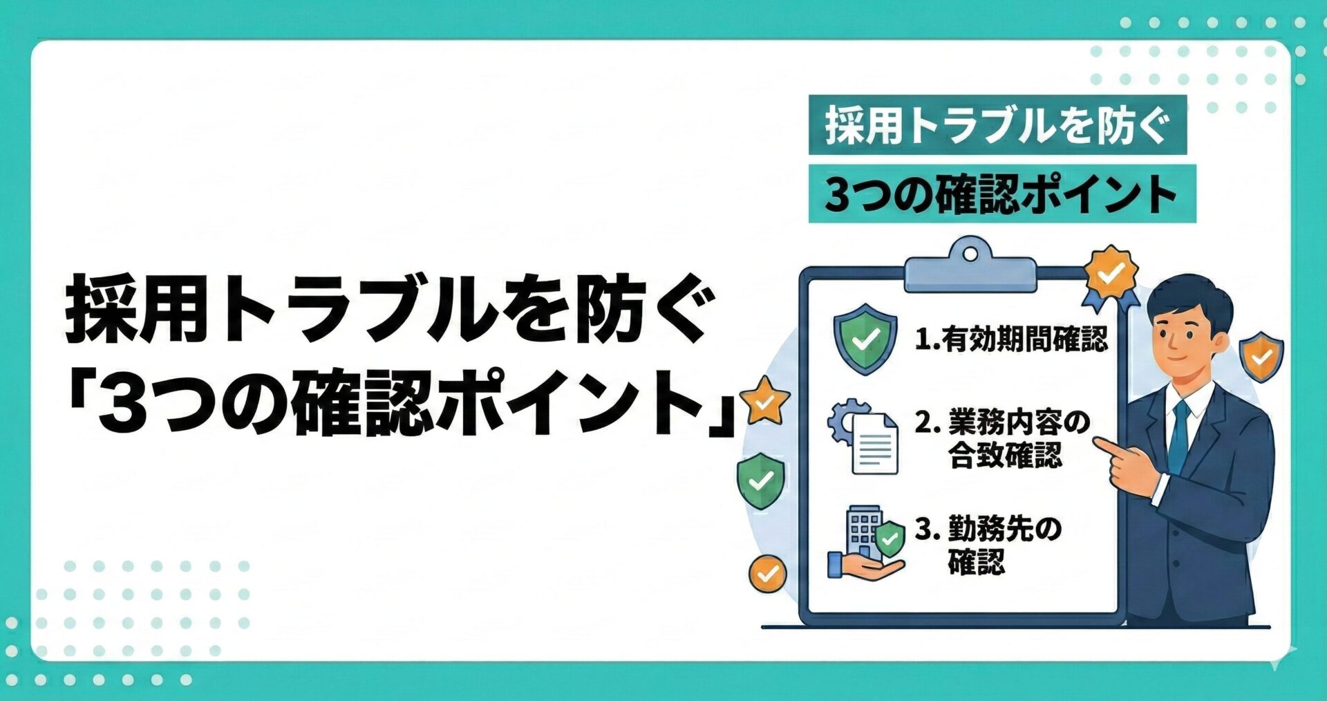 しかし、人事の実務において本当に必要なのは、制度を暗記することではありません。 採用プロセスの中で「どこを確認すればリスクを回避できるか」という、自分なりの判断軸を整理しておくことです。
